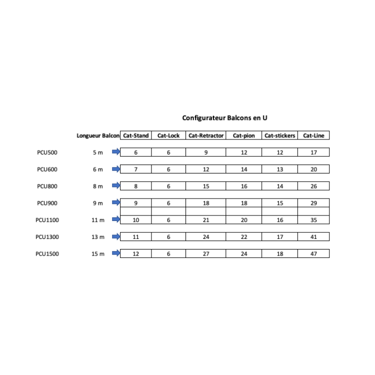Chaque Kit contient tous les éléments cités ci-dessus avec un nombre de produits associés et calculés dans le configurateur indiqué ci-dessous.