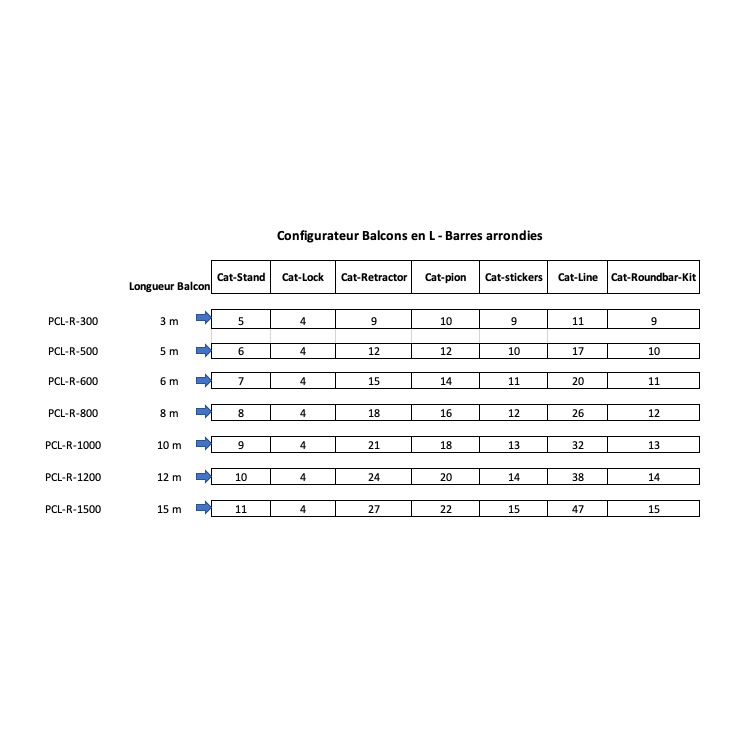 Chaque Kit contient tous les éléments cités ci-dessus avec un nombre de produits associés et calculés dans le configurateur indiqué ci-dessous.
